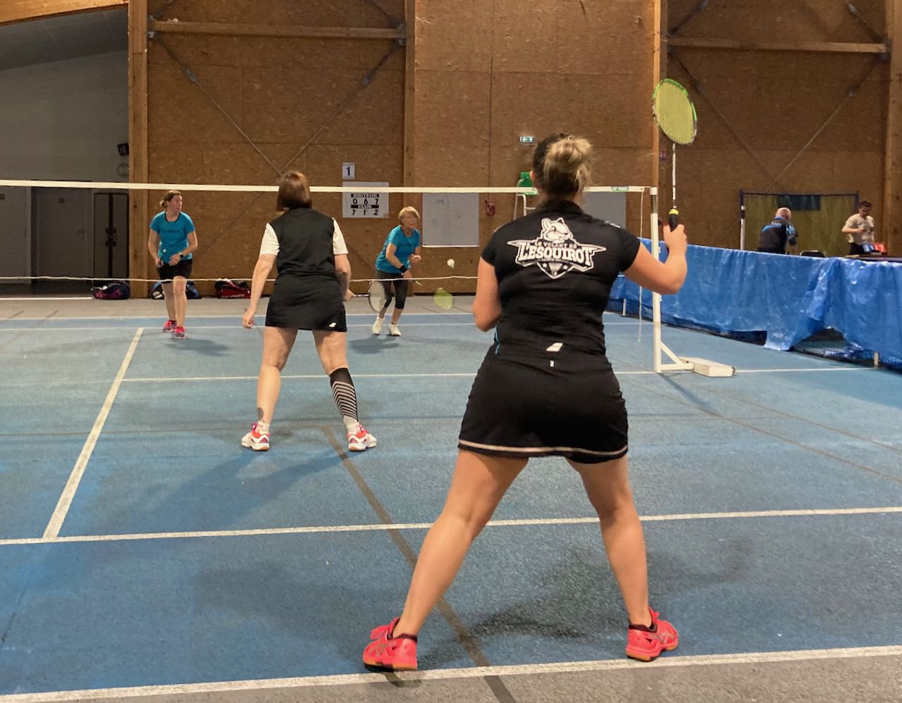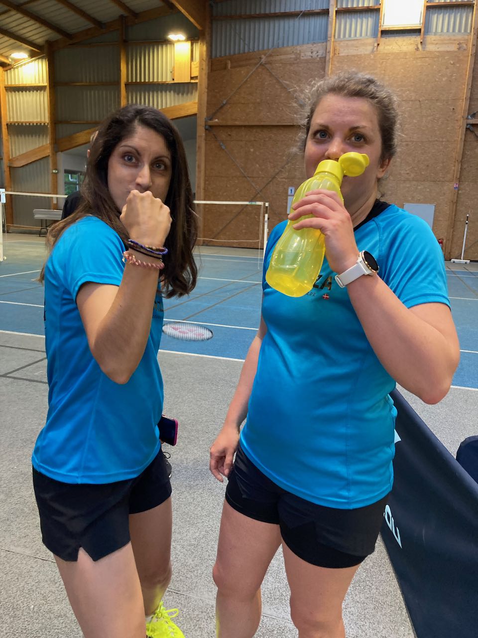 Pour finir le match de double dame avec la paire Aurore et Christiane, une défaite amère, comme le double mixte, la victoire semblait possible mais le faux rythme ne les a pas aidées à rentrer mentalement dans le match. Défaite en deux sets 11_21 et 14-21.