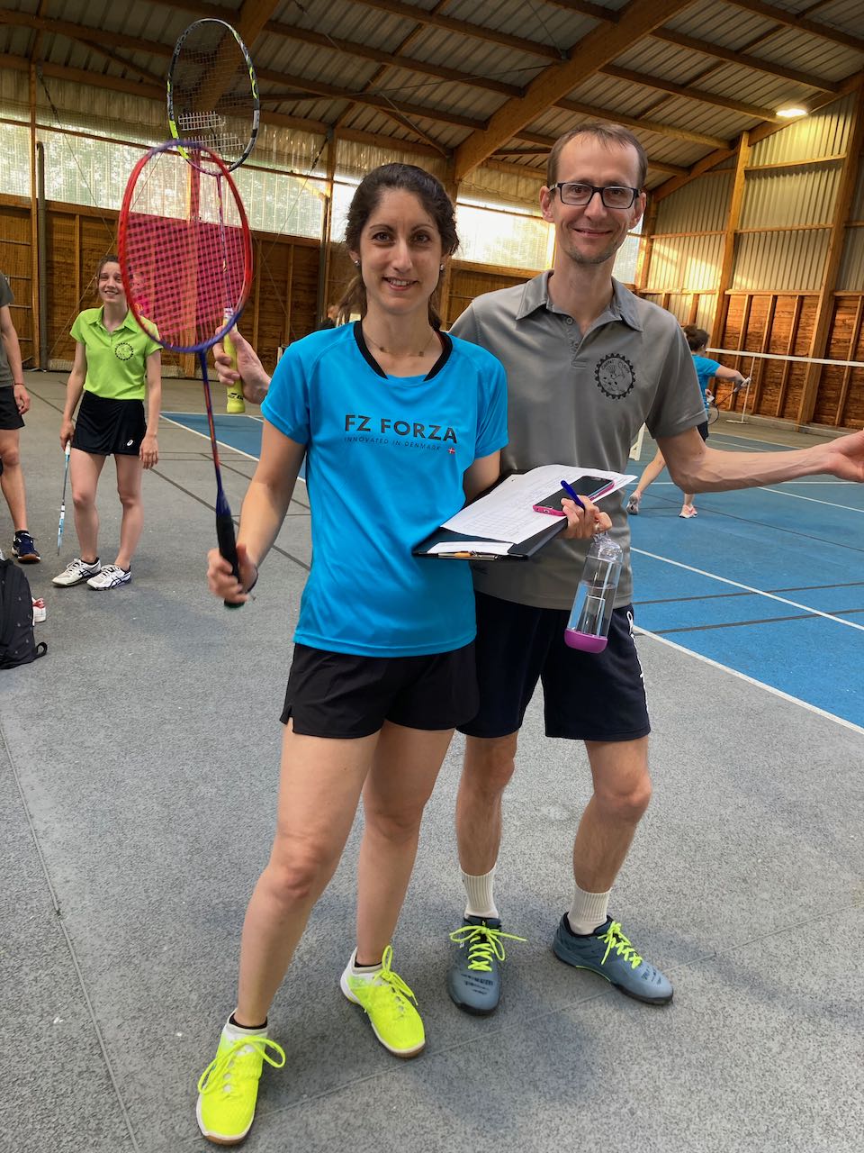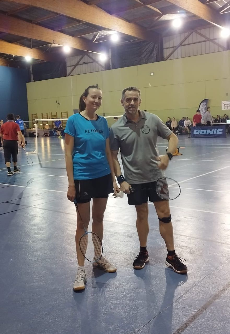 - un match gagné également en mixte série 7 pour Franck et Stéphanie qui faisaient leur premier tournoi ensemble. Impressions de Stéphanie qui n'avait essayé jusque là que le format promobad : "super déçue de mes résultats, frustrée de ne pas avoir réussi à me lâcher (car oui, oui, un peu stressée) pour mieux jouer, surprise d’une telle attente entre les matchs et de démarrer systématiquement à froid… mais ravie d’avoir découvert cet univers et hâte de recommencer pour obtenir de meilleures performances !!"