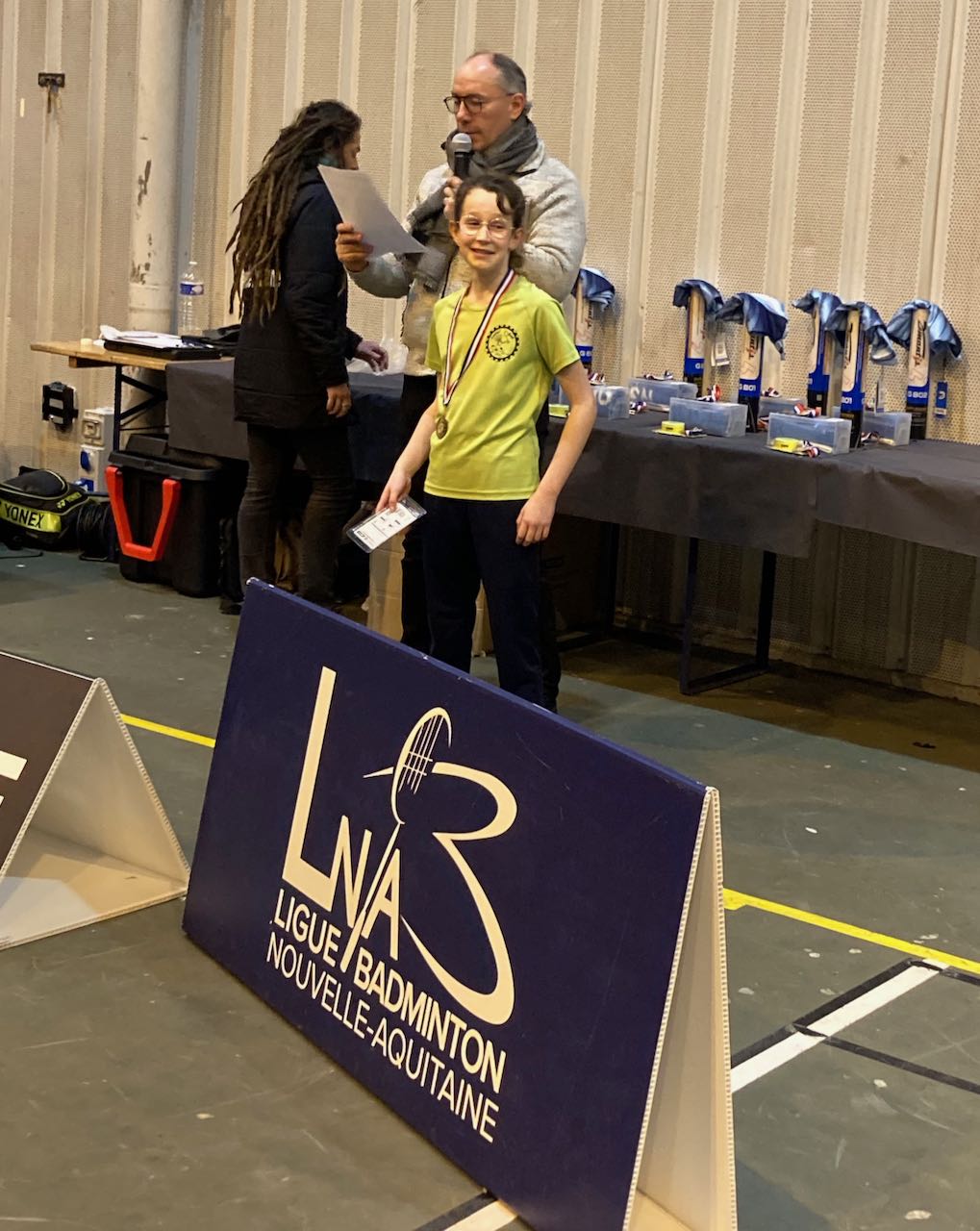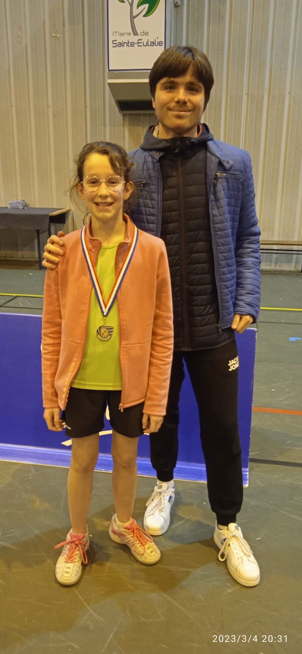 Clarisse vice-championne de nouvelle Aquitaine en mixte benjamin avec Ismael (Bruges).