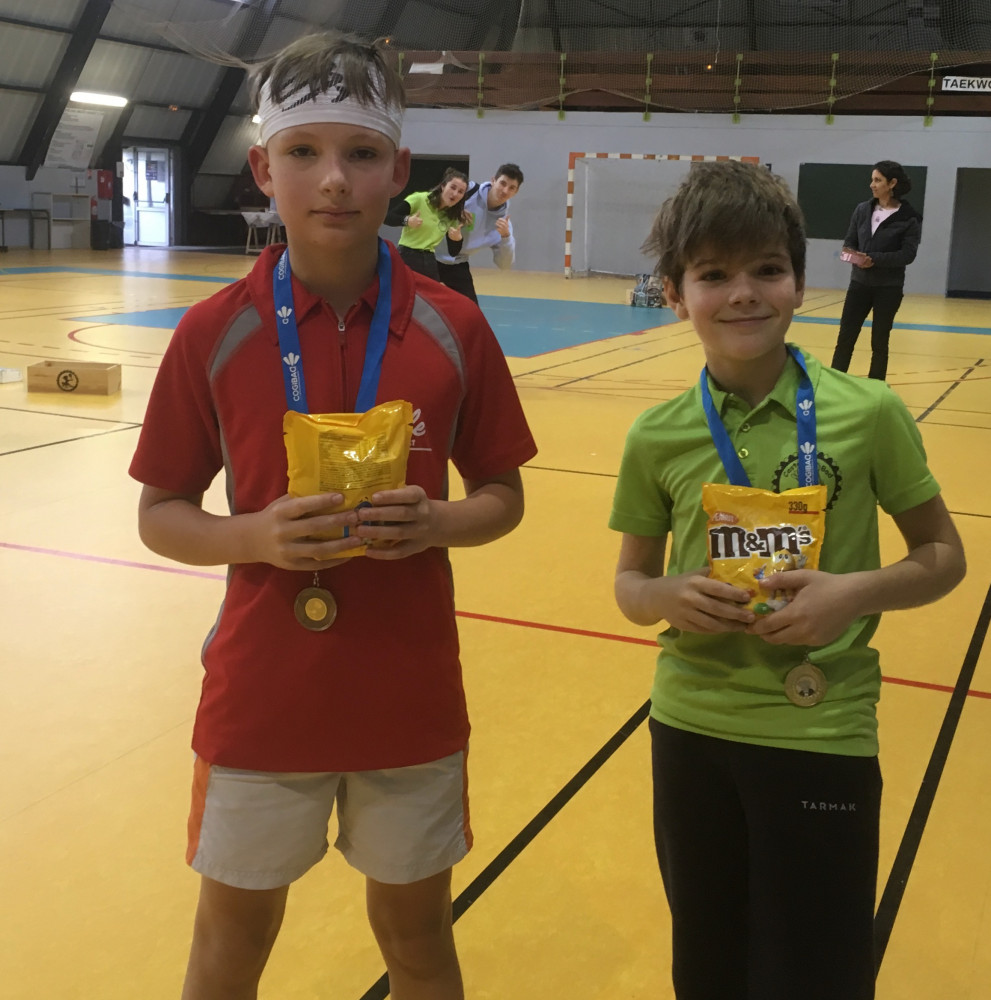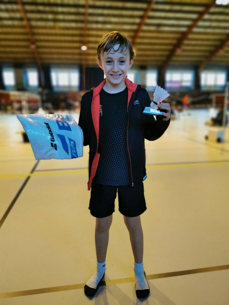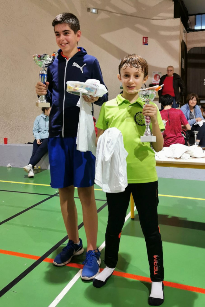 Les jeunes jouaient en simple : quart de finale pour Léna, quart de finale pour Rémi, Finale pour Titouan, vainqueur de Nathan en demi finale, il ne s'incline que contre un géant minime 2 en finale !