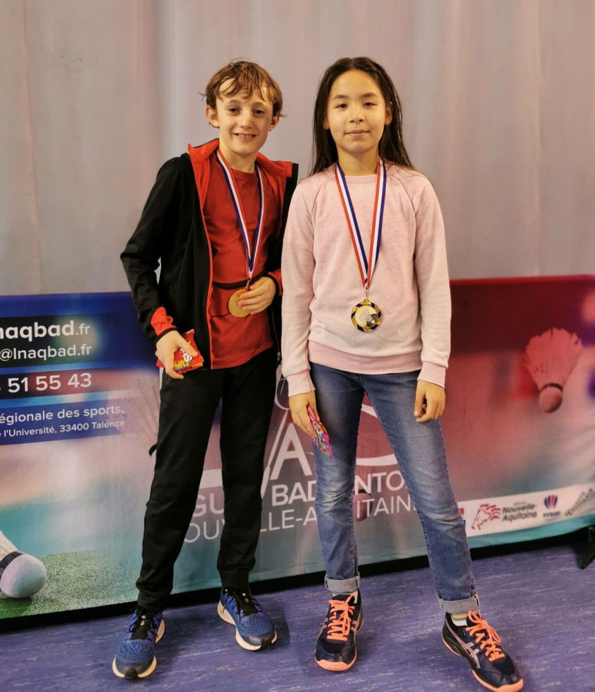 A Isle (près de Limoges) ces 7 et 8 mars, Titouan jouait en simple et mixte pour le Championnat Régional Jeunes de Nouvelle Aquitaine. Tongs aux pieds, raquette entre les jambes, et message à décoder au niveau des doigts (vous avez trouvé?), sa partenaire Léane (Martignas) et lui semblent très décontractés. Mais sur les terrains, c'est du sérieux : Titouan a atteint la demi-finale dans les deux tableaux benjamins, bravo ! Si un certain Andréa (LVB) n'avait pas barré la route des 2 finales et décrochant au passage son billet pour les championnats de France ...