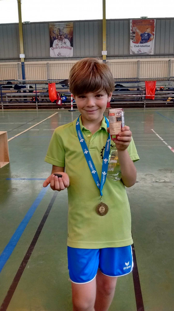 La coupe interdépartementale qui se déroulait ce week-end à Oradour sur Glane a vu s'imposer l'équipe jeune de Gironde face à tous ses adversaires. Félicitations à toute l'équipe et bravo à la rainette qui en faisait partie! En effet Titouan a eu l'honneur d'être sélectionné par le Cogibad. Et le comité ne s'est pas trompé puisqu'il a rapporté 3 points à l'équipe girondine, 2 en simple et 1 en mixte. L'ambiance était excellente et l'équipe très soudée, les petits profitant avec plaisir du niveau de jeu des plus grands. Encore une belle expérience pour Titouan qui avait également participé au Trophée Régional Jeune cette année.